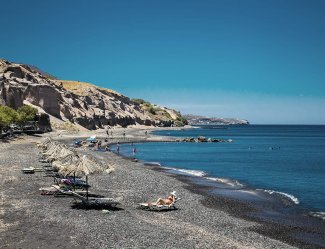 Full of rugged charm and stunning landscapes, Santorini’s coastline arrests the eye and invites you to take a deep dive. Beaches in Santorini are composed of volcanic sand and black pebbles and some of its most surreal shores include the sandy splendour of Vlychada beach, the impressive white cliffs of the White beach and the other-worldly charm of the Red beach. Add to this the long stretch of black sand in Perivolos and Perissa and the lively vibes of Kamari and you have a list with Santorini’s must-see-and-visit swimming spots. Should you wish to go off-the-beaten-path and explore some less-visited corners, head to Koloumpos, Exo Gialos, or Baxedes beach, while a visit to the scenic bay of Ammoudi is also highly recommended.